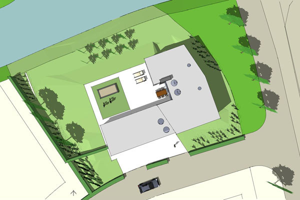 Vrijstaande villa BG Locatie: Mannee te Goes Inhoud: 1200 m3 Naar de wensen van de opdrachtgever is een moderne woning ontworpen op een ruime kavel in de wijk Mannee. De woning is ontworpen rondom een centrale leefruimte met woonkamer, eetkamer en keuken. Tevens bevindt zich het gastenverblijf op de begane grond. Op de benedenverdieping bevinden zich de fitness, sauna en poolkamer. Op de bovenverdieping liggen de slaapkamers, badkamers en een speelkamer/ tv-kamer. Alle ruimtes zijn voorzien van veel daglicht en middels een vide en bordestrap direct verbonden aan het centrale leefgedeelte. Op het gebied van duurzaamheid wordt gebruik gemaakt van een warmtepomp, ventilatie met warmteterugwinning, grijswatersysteem en extra isolatie. impressie kavel |